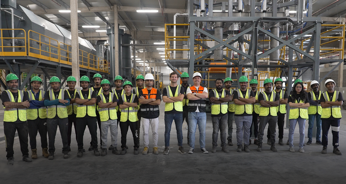 We manage the whole process flow in-house, from sorting the plastic waste, washing, and shredding, up to processing it into high-quality PET and HDPE flakes. We also operate our own water treatment facility, allowing us to re-use 80-85% of the consumed water for washing.